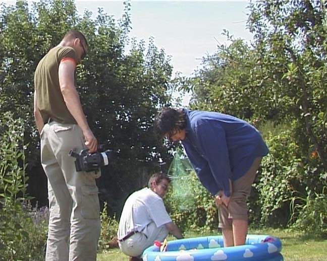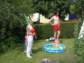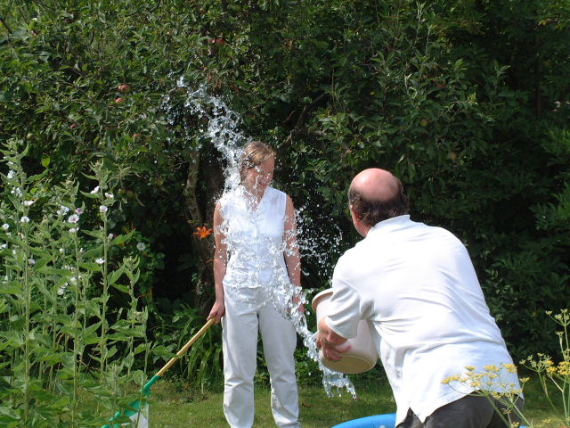 | Just the thing for a hot day | Husband and wife | A day in the garden | Dan practising his dog-pleasing technique |