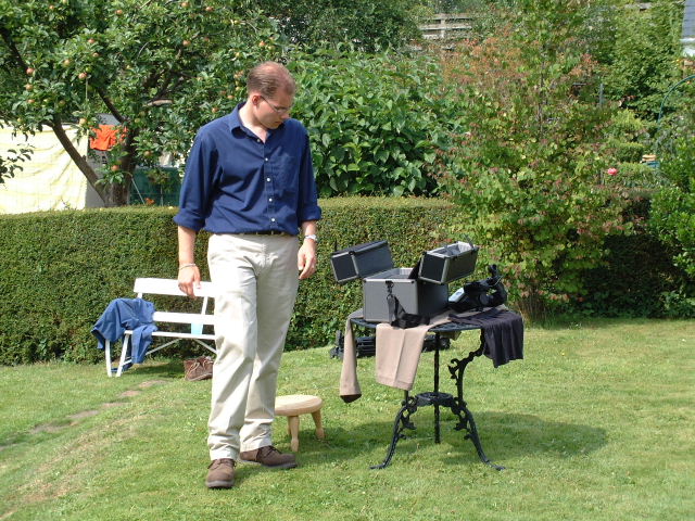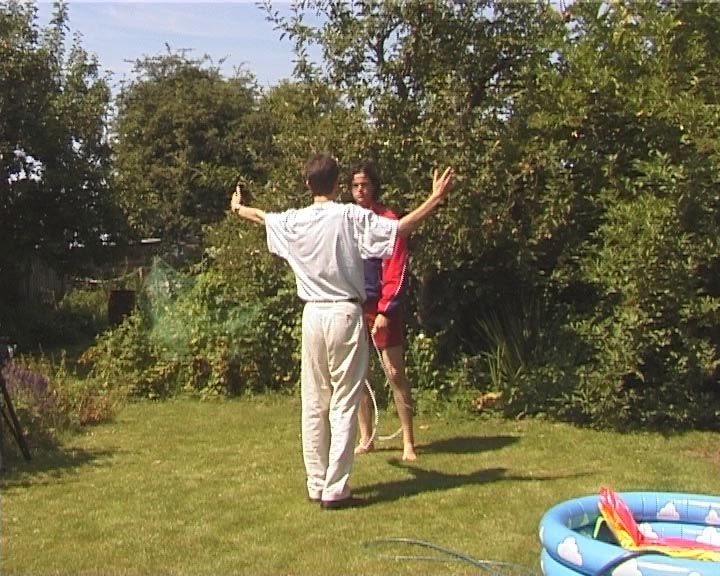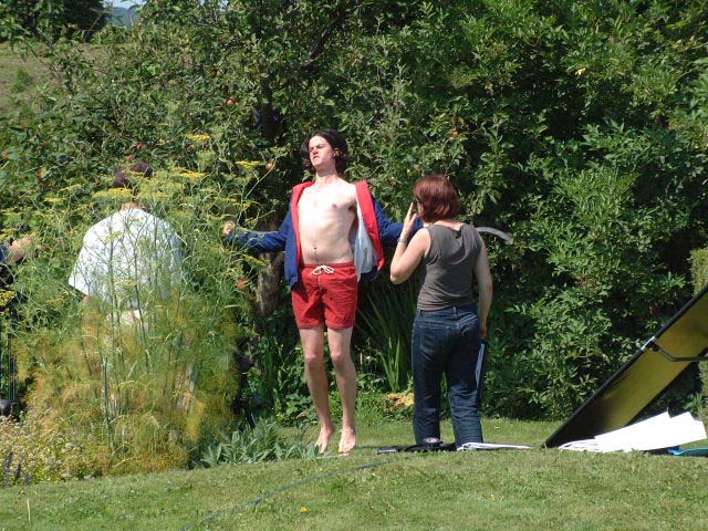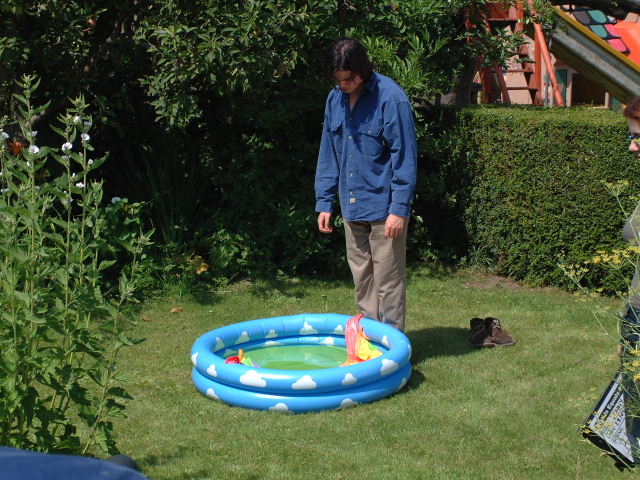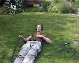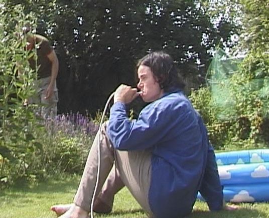 | Just the thing for a hot day | Husband and wife | A day in the garden | Dan practising his dog-pleasing technique |